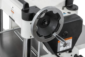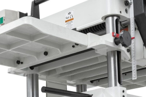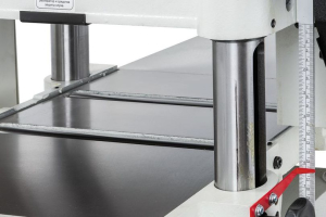 JWP-15K — рейсмусовый станок с прочной и массивной конструкцией, предназначенный для профессиональной и любительской эксплуатации. Рабочий стол, его удлинения, основание и строгальный узел сделаны из чугуна. Регулировка просвета происходит при подъеме и опускании стола, в нижнем положении расстояние до ножей превышает 200 мм, что позволяет пропускать крупные брусья или доски, поставленные на ребро.